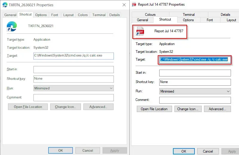 The.LNK file, which is disguised to appear like a PDF containing crucial information or a file that opens in Microsoft Edge, is the only thing that appears when the user mounts the ISO file. However, the shortcut's destination is the Windows Calculator app.